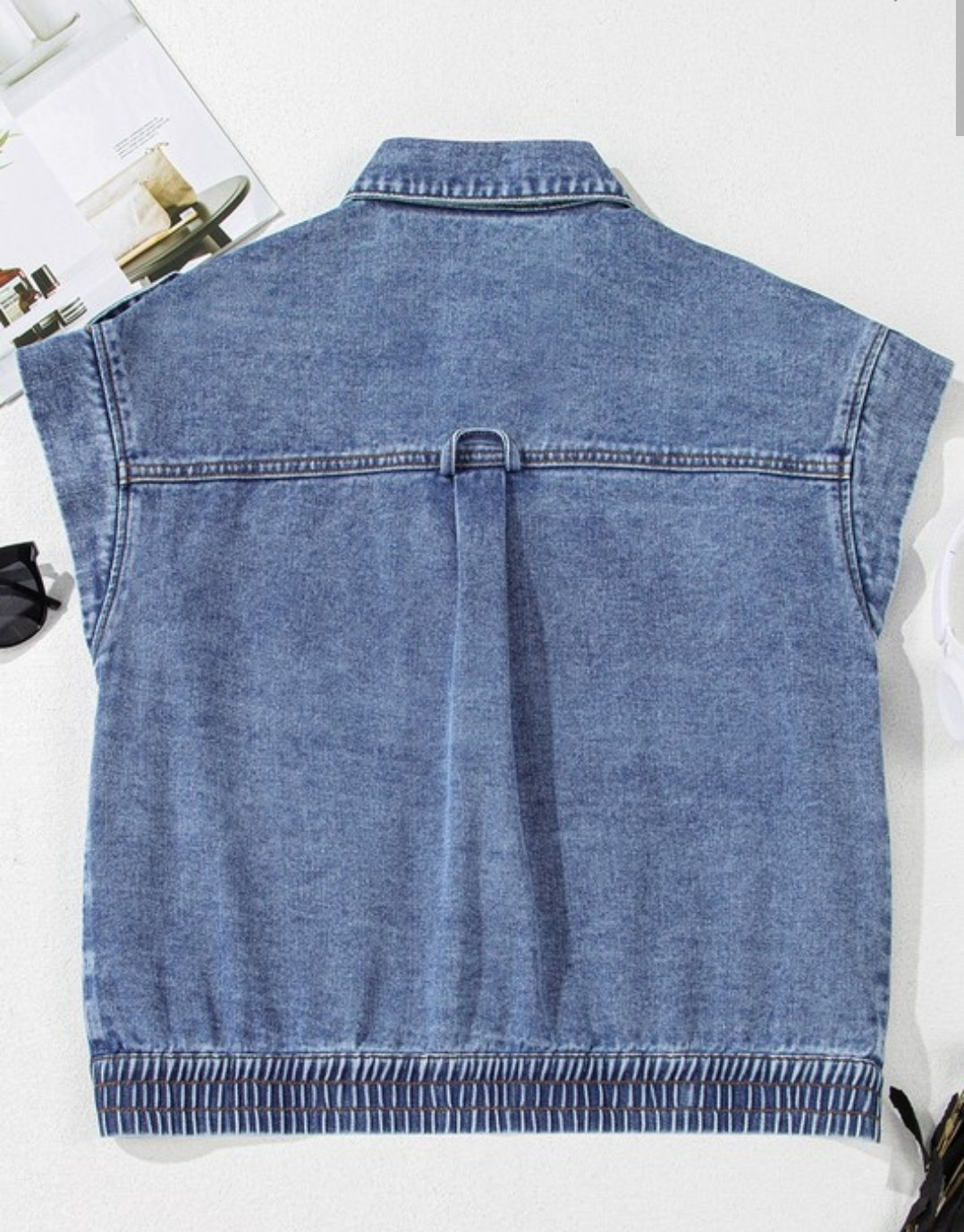 DENIM/WESTERN Acid wash finish gives a vintage look with a modern twist. Elastic hem offers a comfortable and adjustable fit. Button-up front adds a touch of classic style to your outfit. Denim material provides durability and versatility.