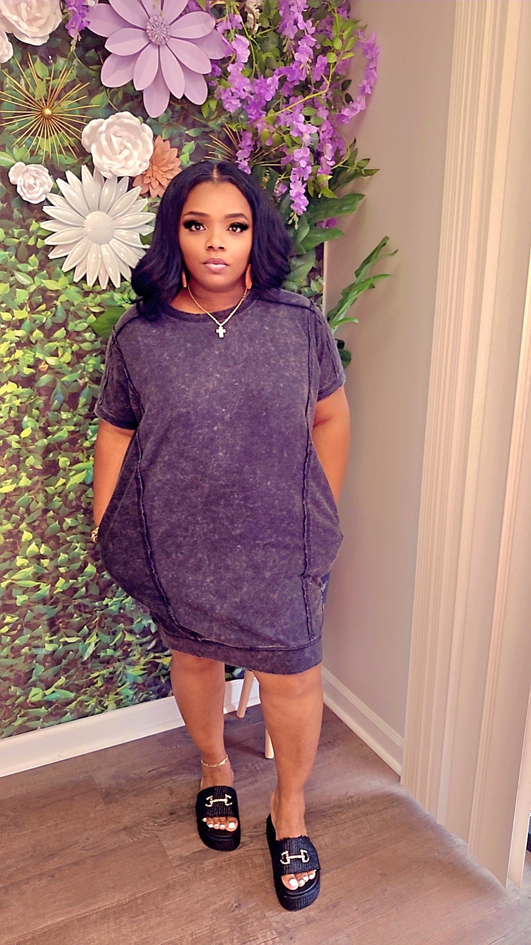 French Terry Denim Dress (Ash Black)