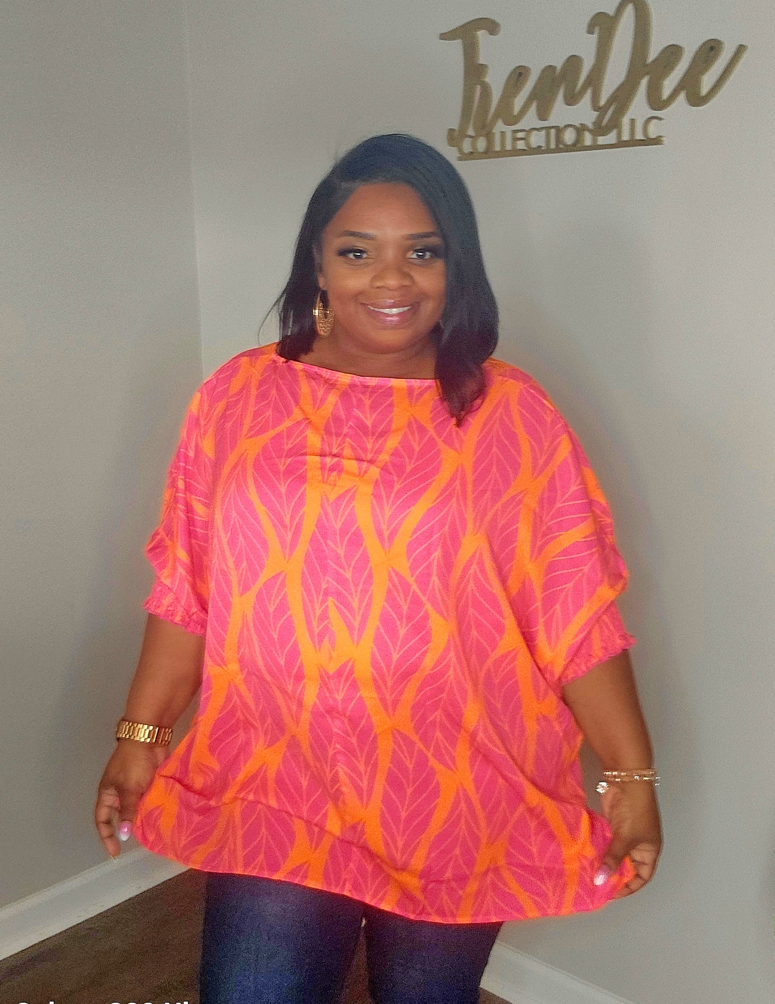 Wearing xl in pic would do large